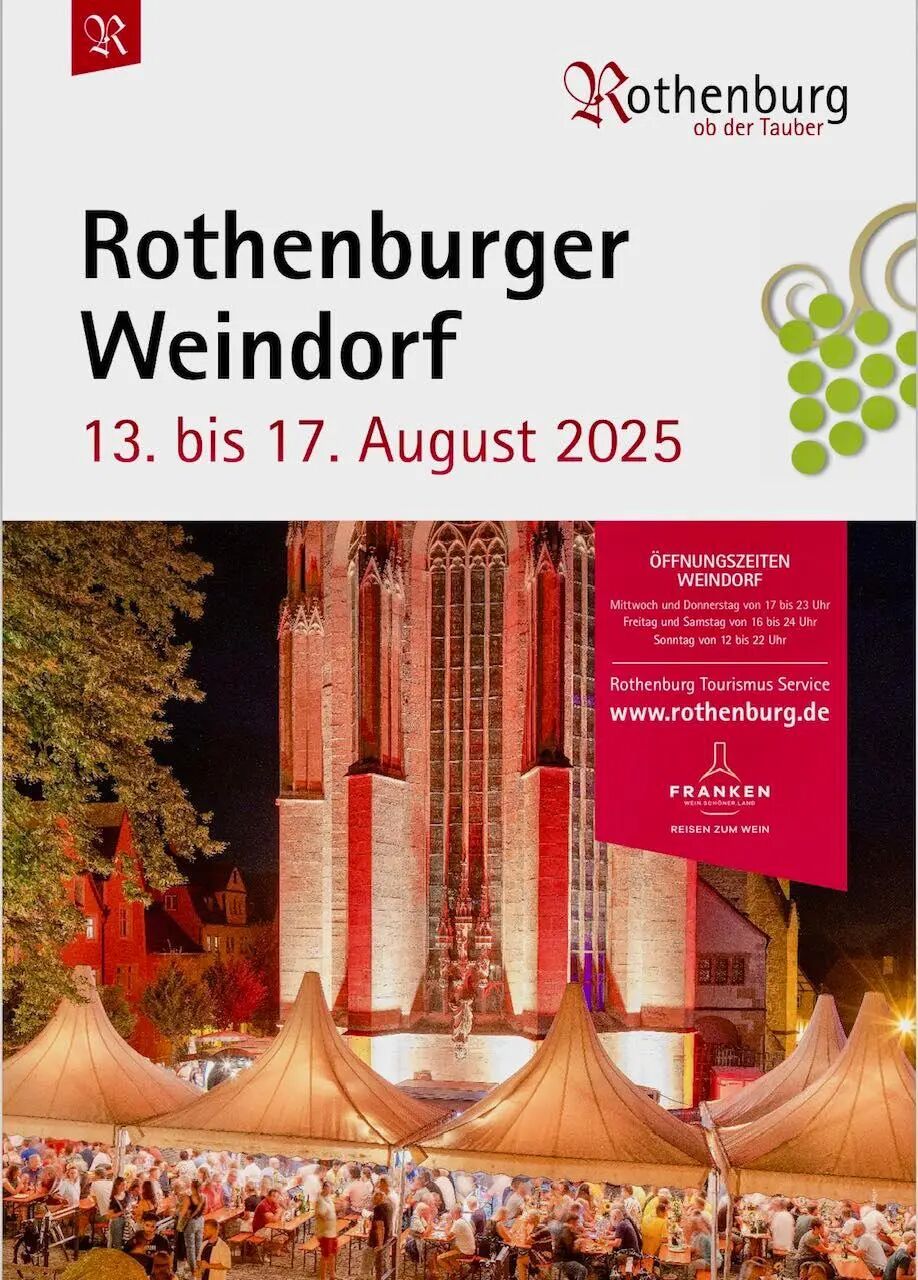 罗滕堡是德国“浪漫之路”上的童话小镇,而8月的葡萄酒村节(Weindorf Rothenburg)让这里更加迷人!当地酒庄直接在塔楼下摆摊,可以品尝各种小众酒款,还会搭配野堡香肠及弗兰肯炸面点等传统美食……